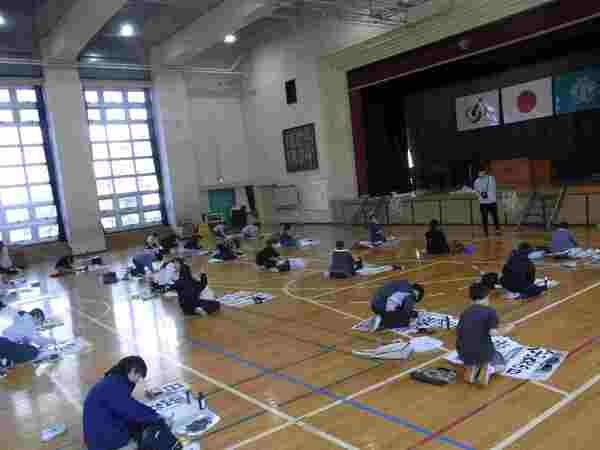 6年生が書きぞめ清書会を行いました。みんな真剣な様子で、筆順やとめ、はね、はらいに気をつけながら、一画一画を丁寧に清書していました。6年生らしく、力強く美しい文字を書くことができていました。